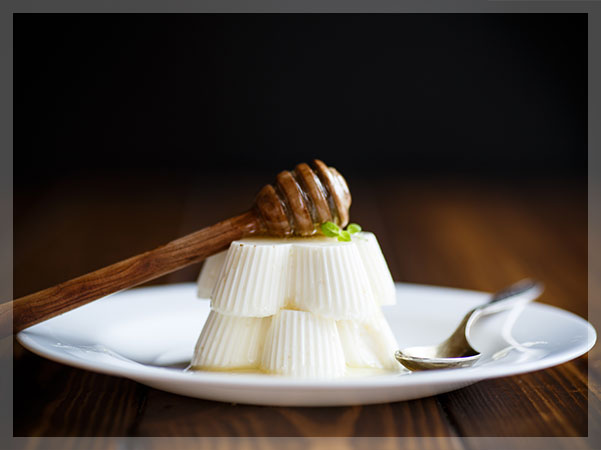 Drizzle the Cinnamon sauce over the Panna Cotta.